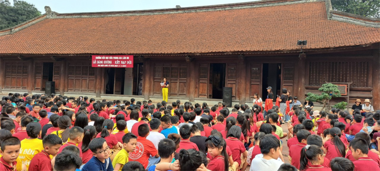 Tới Văn Miếu các con được nghe giới thiệu về ngôi trường đại học đầu tiên của Việt Nam, là nơi chứa đựng những giá trị tinh hoa văn hóa của những giai đoạn lịch sử phong kiến trước kia và lưu giữ những giá trị truyền thống của đất Việt. Ngoài ra, các bạn còn được vinh dự kết nạp đội tại Di tích lịch sử nổi tiếng, được cô giáo đưa vào tham quan và thắp hương thầy giáo Chu Văn An.