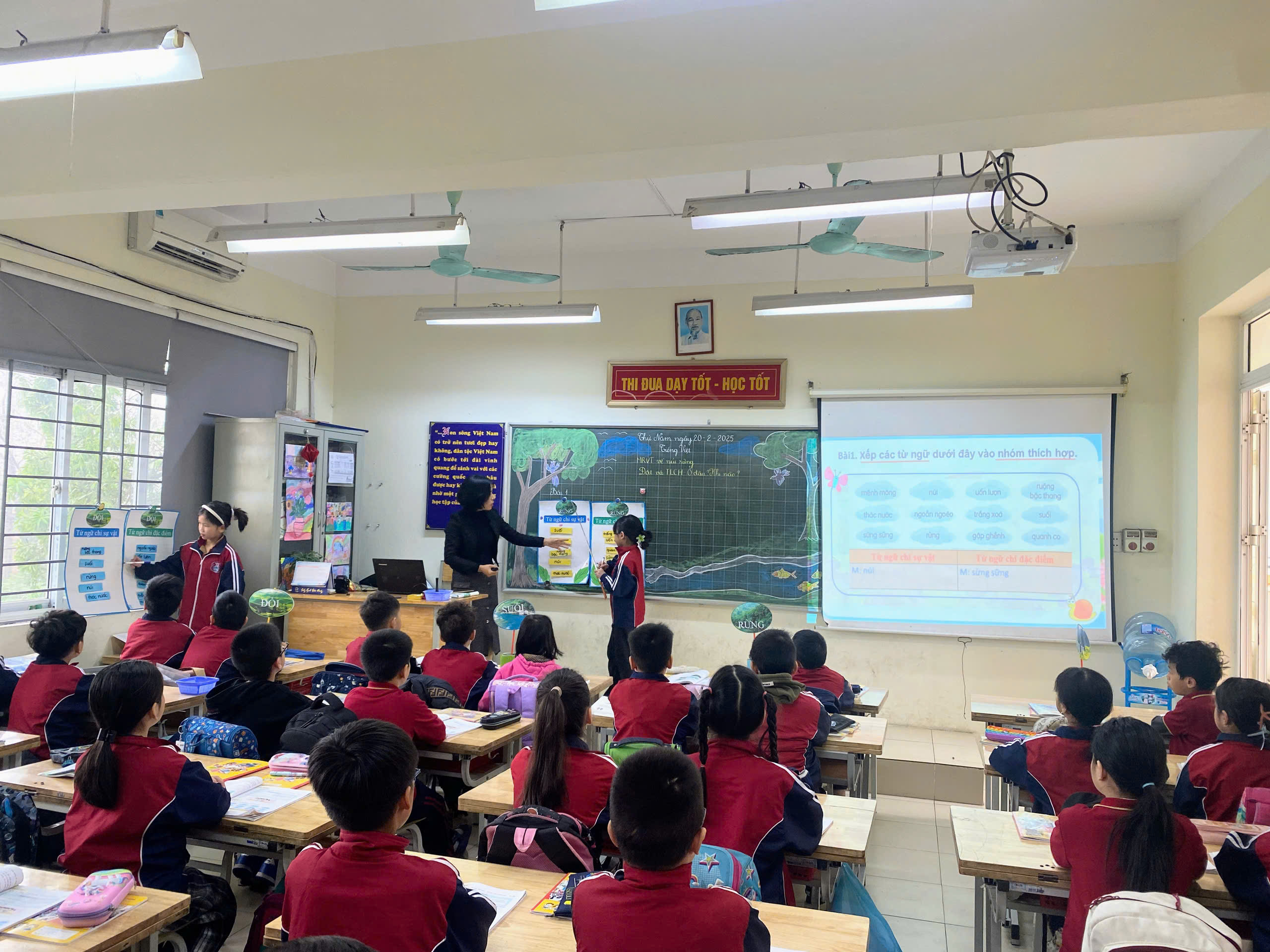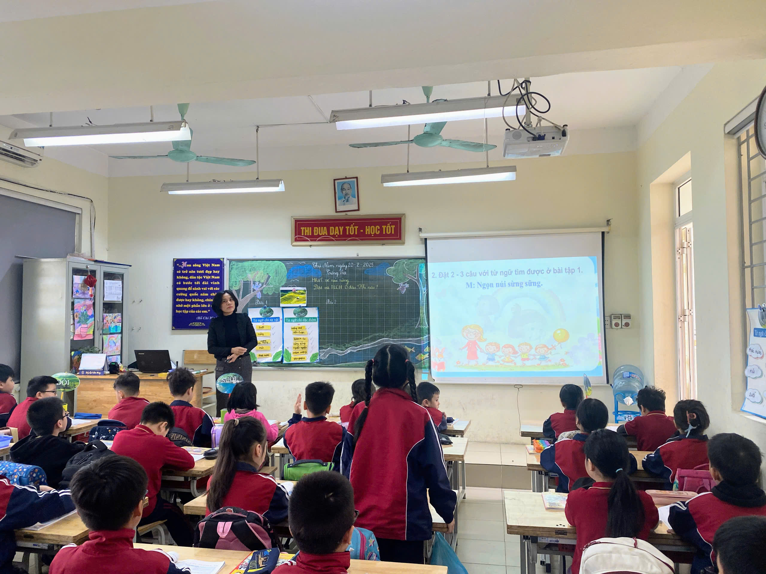 🌟 Qua tiết học, các em được Mở rộng vốn từ núi rừng, biết cách Đặt và trả lời câu hỏi về thời gian, địa điểm. Trong tiết dạy, cô giáo đã ứng dụng số thiết kế bài giảng trực quan với các video sinh động, nhờ đó học sinh có thể dễ dàng liên hệ với thực tế và bị cuốn hút vào bài học. Qua đó, sẽ chủ động hình dung và ghi nhớ nội dung bài đồng thời tham gia tương tác, xây dựng bài, giúp hiểu bài học tốt hơn.