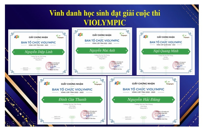 Chúc mừng các em học sinh và thầy cô hướng dẫn có giải và cũng trân trọng sự nỗ lực của tất cả các em học sinh của nhà trường và các thầy cô đã tham gia ôn luyện trong cuộc thi Violympic năm học 2022 – 2023.