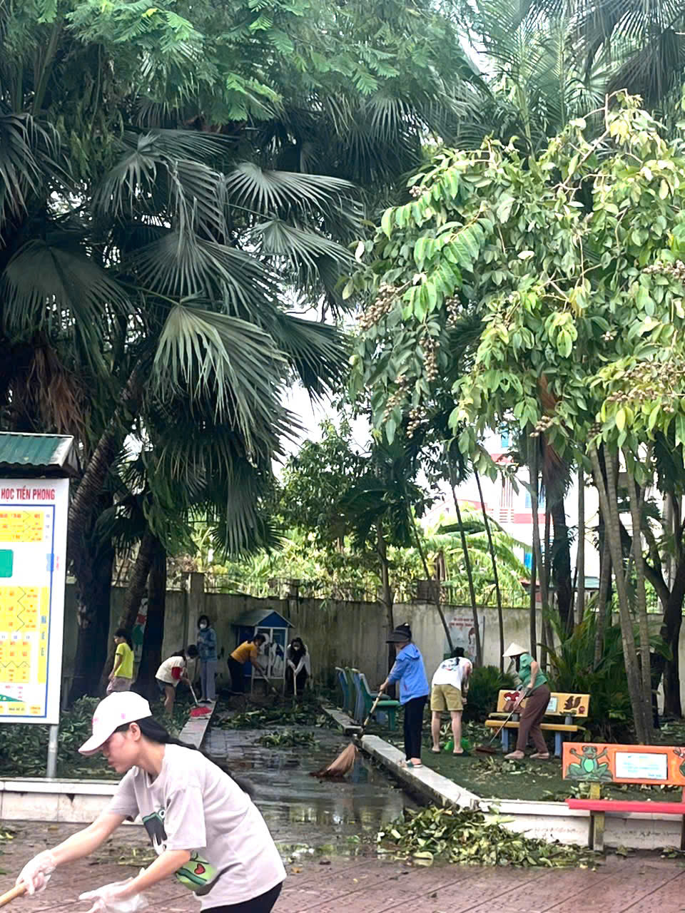 Chiều ngày 8/9/2024, với sự hỗ trợ nhiệt tình của các bác phụ huynh cùng các thầy cô giáo, các cô bác nhân viên trường Tiểu học Tiền Phong, "bãi chiến trường" do cơn bão số 3 gây ra đã nhanh chóng được thu dọn, vệ sinh sạch sẽ, trả lại khuôn viên sạch đẹp, an toàn để chào đón các con học sinh đến trường học tuần đầu tiên của năm học mới đúng thời gian. Nhà trường xin trân trọng cảm ơn sự giúp đỡ, hỗ trợ tích cực của các bậc CMHS, trân quý tình cảm mà các bác đã dành cho nhà trường, các thầy cô giáo và các con học sinh để nhà trường có môi trường tốt cho các con học tập.