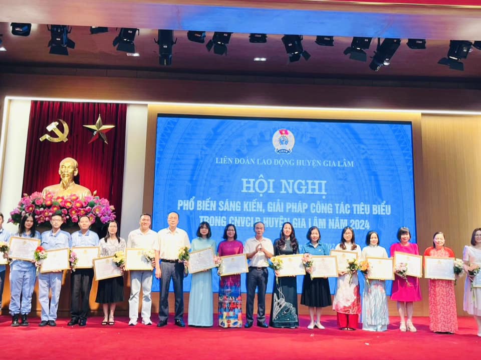 Sáng ngày 8/8/2024, Liên đoàn Lao động huyện Gia Lâm tổ chức Hội nghị trao tặng Kỷ niệm chương “Vì sự nghiệp xây dựng tổ chức Công đoàn”, biểu dương Chủ tịch Công đoàn cơ sở tiêu biểu; phổ biến sáng kiến, giải pháp công tác điển hình năm 2024.